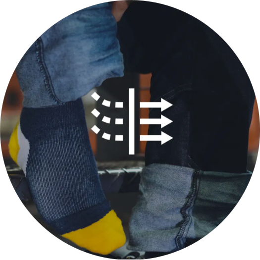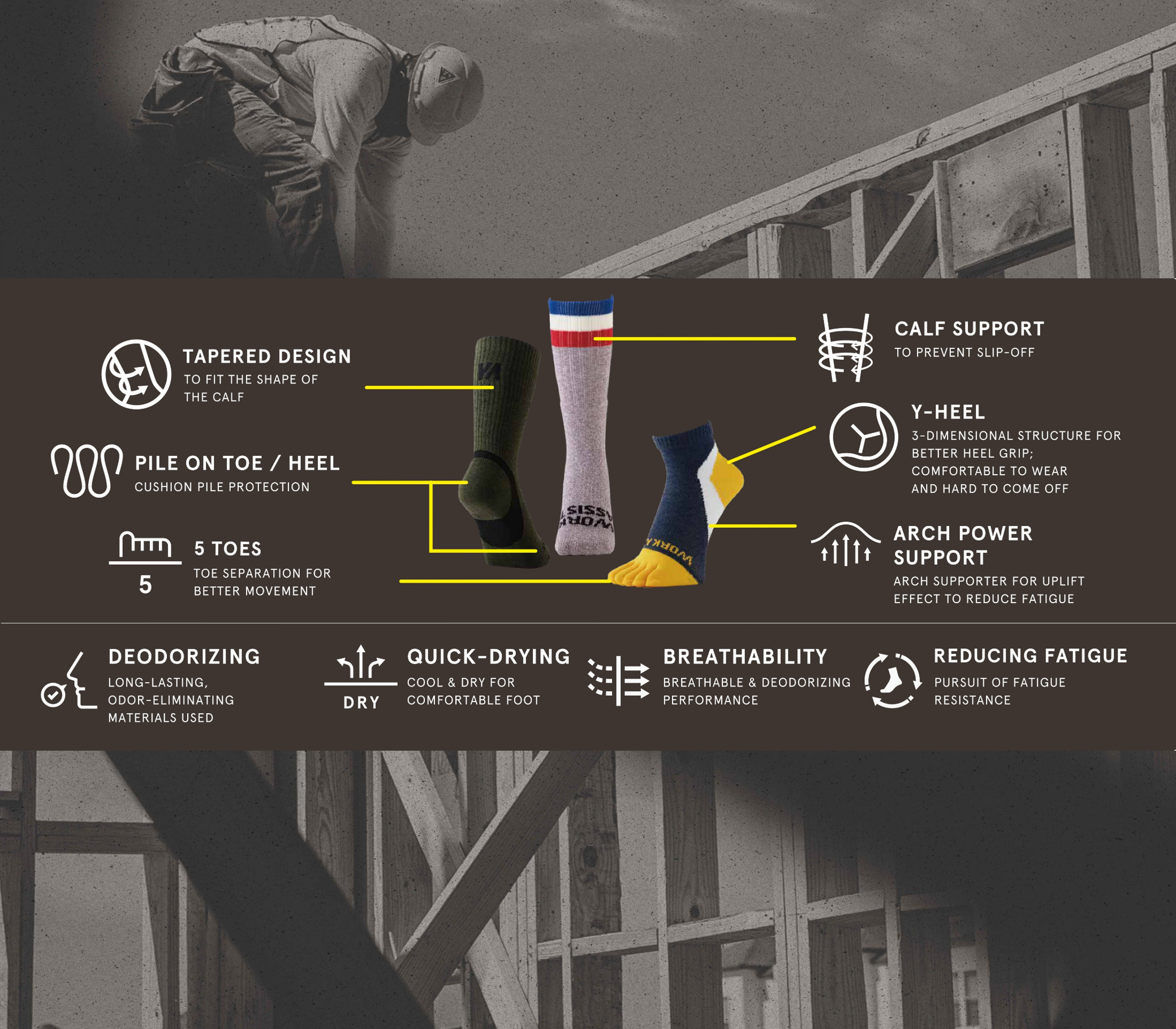 As a type of knitted fabrics, socks generally have structures with excellent breathability. By using carefully selected materials, WORK ASSIST achieves even better breathability.