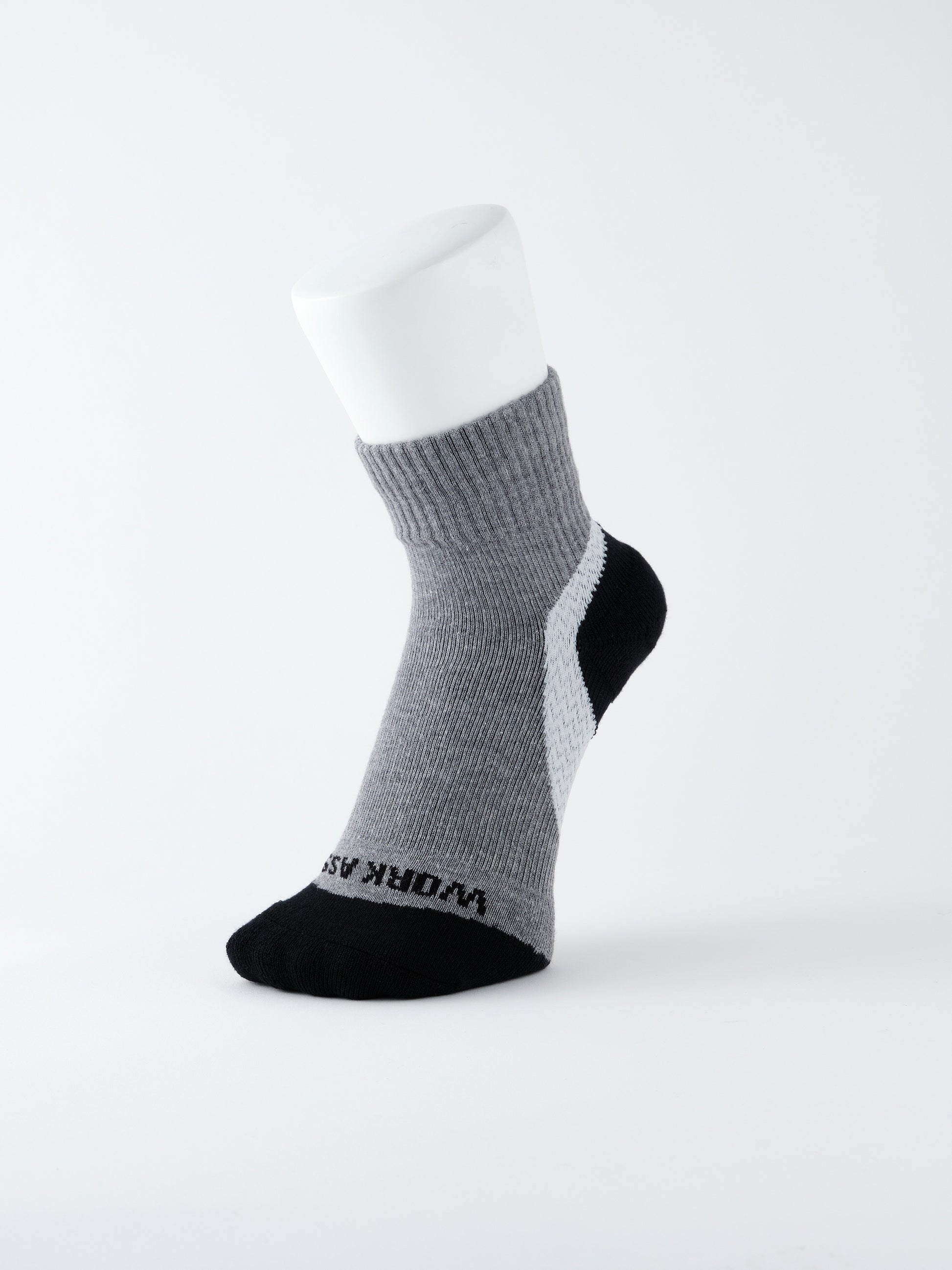 SIZE : M(25~27) / L (27~29) Functions : DEODORIZING MATERIAL ARCH POWER SUPPORT Y-HEEL BREATHABILITY QUICK-DRYING PILE ON TOE / HEEL "Arch Power Round" socks have round toes that come standard with the Arch Power Support. Pile knitting at the toes and heels improves protection, durability, sweat absorption, breathability and heat retention. There are two types available - "Regular" that goes up to your calf and hold the area adequately; and "Short" that is easy to put on and take off. They will provide a high sense of security and comfort to all sort of work.